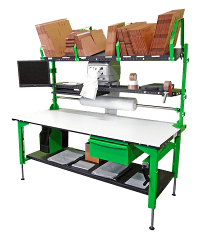 Nos postes d'emballage sont personnalisable selon vos besoins et vos activités. Le matériel est modulable, robuste et ergonomique pour organiser au mieux vos expéditions.