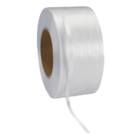 Feuillard textile fil à fil 19 mm x 600 m, souple et très résistant, idéal pour le cerclage de charges fragiles, lourdes ou hétérogènes. Adapté à une utilisation manuelle ou avec boucle.