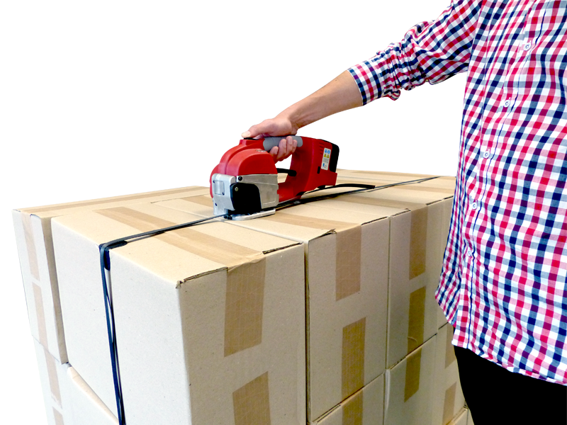 L’outil de cerclage électroportatif sur batterie permet de réaliser la tension du feuillard et la soudure par friction très facilement. Ce type d’outils s’utilisent sans boucle ni chappe, il garantit également une tension constante du feuillard autour de la charge. Pour les faibles utilisations, il est possible également d’utiliser un outil de cerclage tendeur sertisseur ou tendeur.