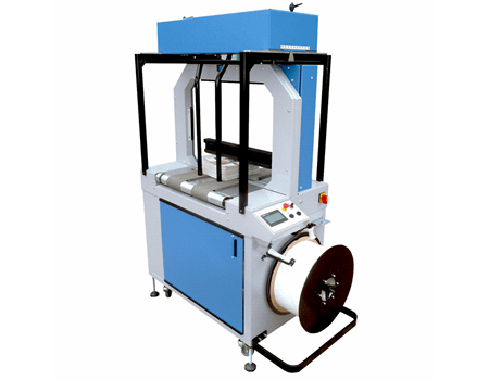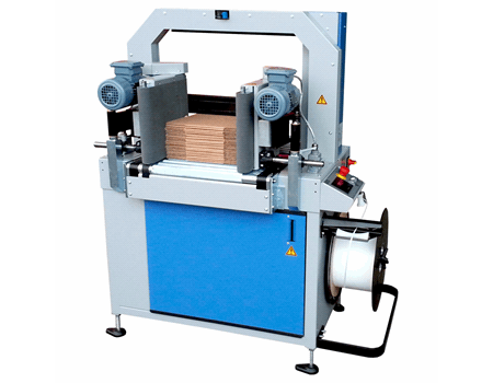 Cette machine peut également être équipée d’une presse pour le maintien des produits pendant la phase de cerclage.