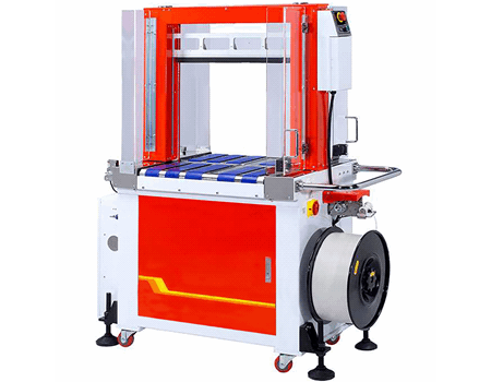 ● la cercleuse semi-auto à arche, pour une utilisation renforcée, avec application automatique du feuillard sur le produit à emballer via un bouton ou une pédale et qui répond à un usage intensif et régulier
