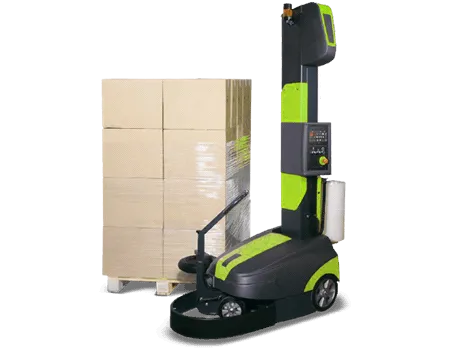 Lors de la mise sous film, il y a un aspect dimensionnel en vigueur à respecter qui est régi par des normes. En bref, la palette ne doit pas dépasser la taille du plateau tournant. Cependant, sur une solution mobile réglable de type robot automatique, il est tout à fait possible d’augmenter la taille du plateau.