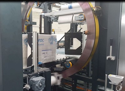 De plus en plus, nos clients nous sollicitent pour des applications nécessitant l’utilisation de filmeuses orbitales. Ces machines ont pour principe de faire tourner deux bobines de film dans un anneau vertical. Ces bobines sont freinées de manière à installer un taux d’étirage. Il est possible de paramétrer différents modes de fonctionnement : filmage renforcé en extrémités, filmage plus ou moins espacé sur la longueur. Ces machines sont donc appropriées pour la protection ou la mise en lot de produits longs comme par exemple dans les marchés des profilés (alu, bois) ou de la quincaillerie.