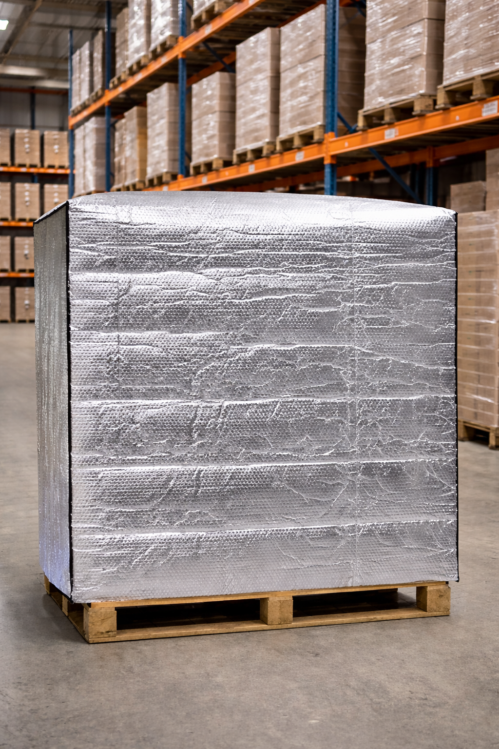 Enveloppe la palette sur 5 faces. Idéale pour une protection complète contre la poussière, l'humidité et les chocs. Disponible en version standard, rétractable ou isotherme.