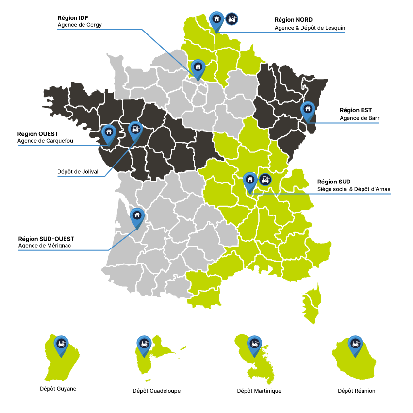 7 dépôts de proximité en France et à l’étranger