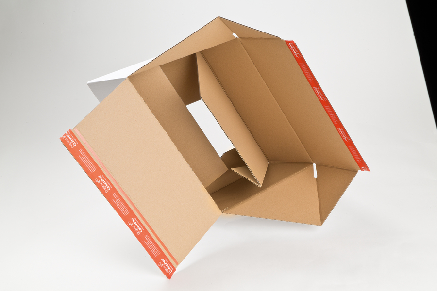 Carton à fond automatique hauteur variable à fermeture adhésive et bande d'arrachage 44,5 x 31,5 x 18-30 cm