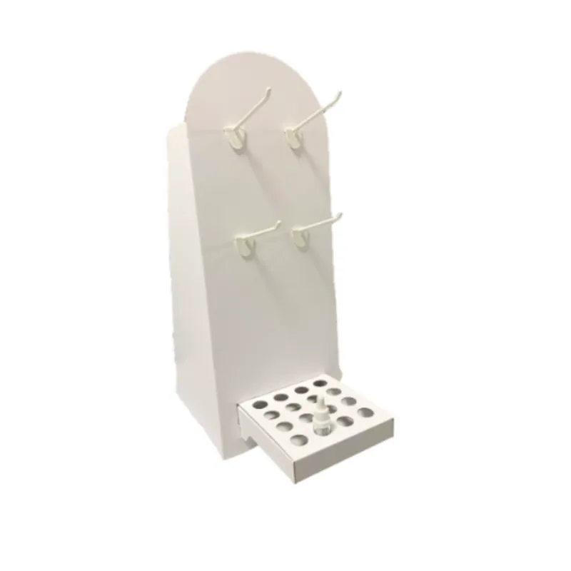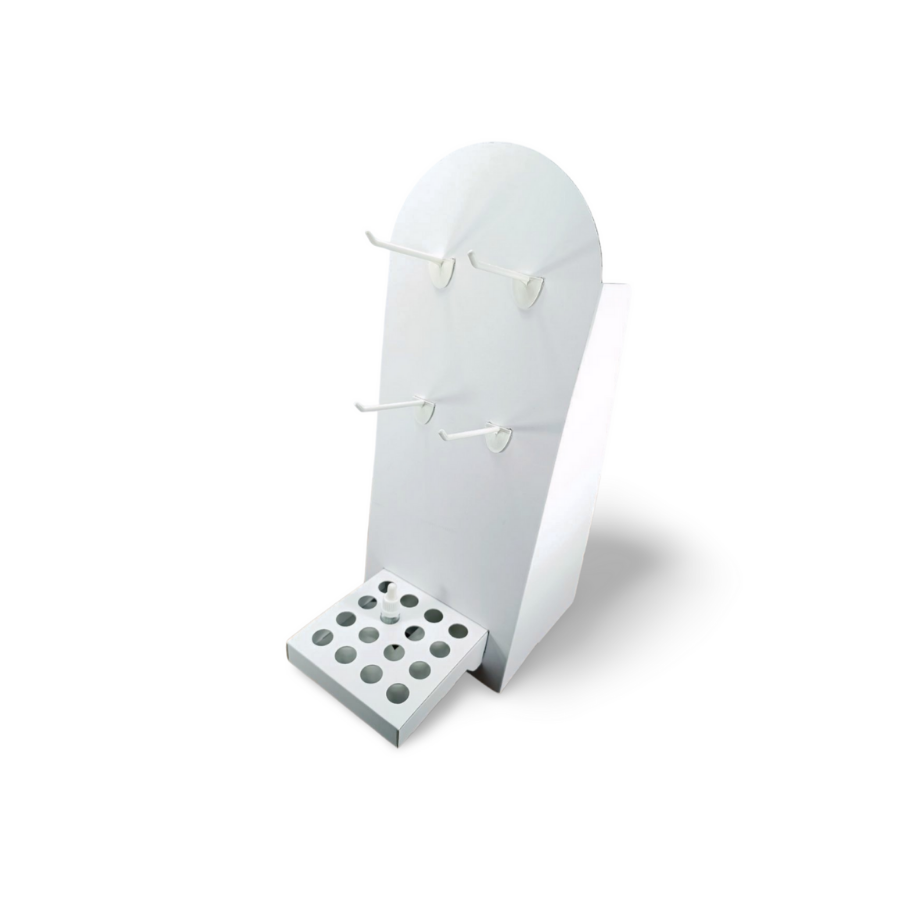 Présentoir carton 2 en 1 CBD – 4 broches, 16 emplacements flacons - blanc 24 x 61 x 35 cm