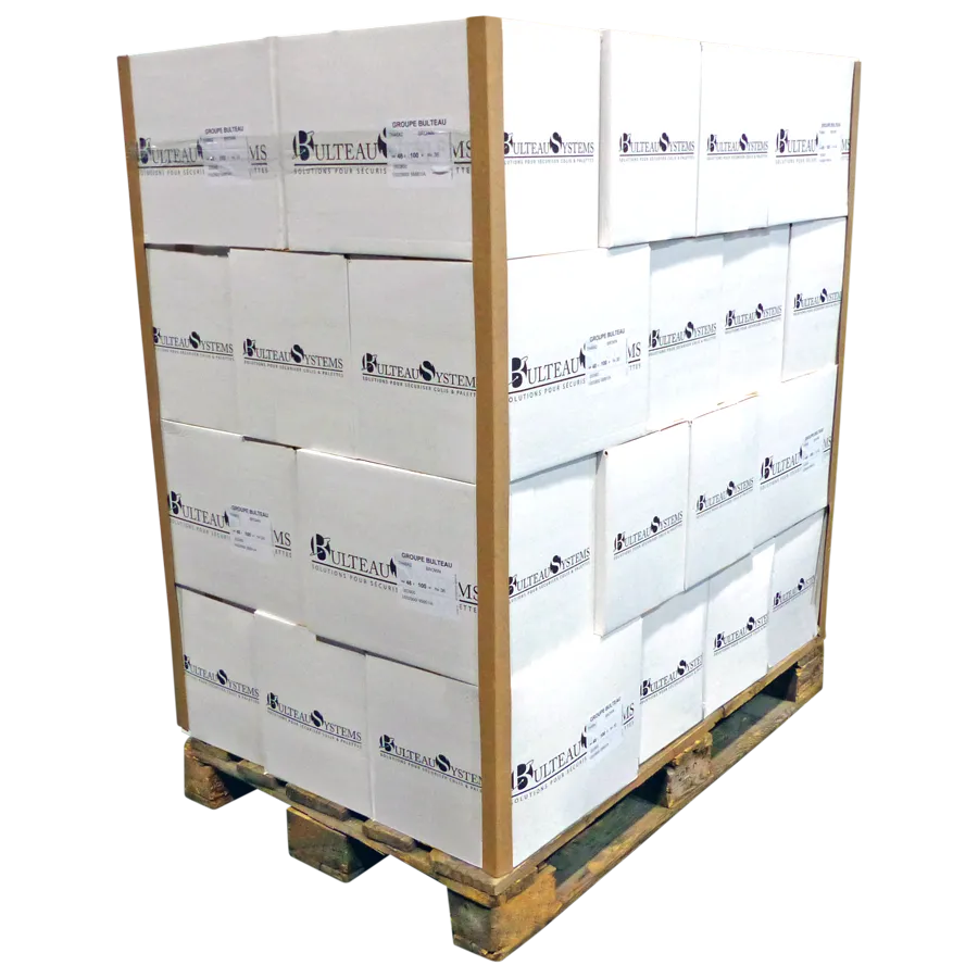 - Stabilise les charges et protège les produits avant l'utilisation de film étirable et ou de cerclage.