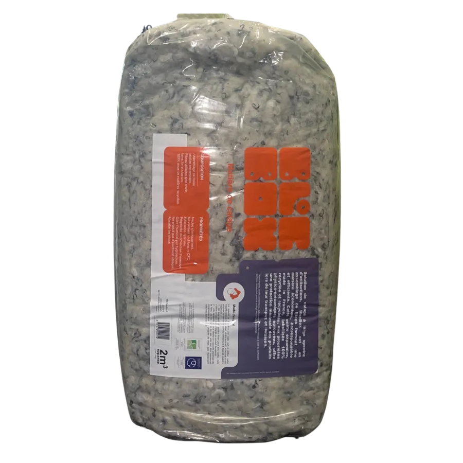 Evitez la casse et le vide avec une solution de calage 100% recyclée et recyclable ! Palettisé par palette de 80 x 120 x 170 cm. Un sac fait 2m3 et fait 80 x 40 x 40 cm. Matière très légère avec un poids de 5kg/m3. Ce produit est une ouate à mémoire de forme avec de grandes propriétés de protection thermique. L'humidite est géré par hygroscopie. Pas d'électricité statique et résistante à la perforation. Particulièrement adapté au e-commerce, à l'industrie et aux logisticiens. Une solution innovante en ouate textile qui convient pour envelopper, protéger, remplir le vide à l'intérieur de vos colis. Ce produit peut être recyclé dans des points relais textile et peut-être réutilisable. Convient parfaitement pour remplacer les particules de calage. Les particules de calage en fibres textiles recyclées et naturelles représentent une solution de calage innovante et durable, parfaitement adaptée aux besoins des entreprises, e-commerçants et logisticiens. Composées de fibres variées telles que le coton, la laine, le lin et le chanvre, ces particules sont conçues pour absorber efficacement les chocs, protégeant ainsi vos produits des dommages lors du transport. Leur légèreté, avec un poids de seulement 5 kg/m3, facilite la manipulation et contribue à réduire les coûts de transport. En plus d'être réutilisables, elles sont exemptes de chlore, de CFC et d'agents polluants. La ouate à mémoire de forme assure une protection thermique optimale, tandis que leur gestion de l'humidité par hygroscopie et leur résistance à la perforation ajoutent une couche de sécurité. Conditionnées par sac de 2 m3, ces particules sont idéales pour remplir les vides à l'intérieur des colis, tout en étant recyclables dans des points relais textile.