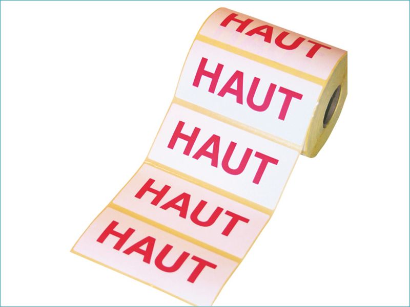 Etiquette d'expédition fond blanc imprimé rouge "Haut"