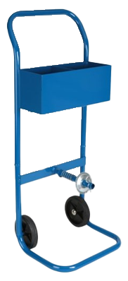 Chariot porte bobine à joues plastique à roulettes et bac de rangement