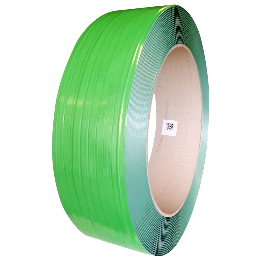 Feuillard polyester vert 100% recyclé 12mm x 0.6mm x 3000 M diamètre intérieur 406mm