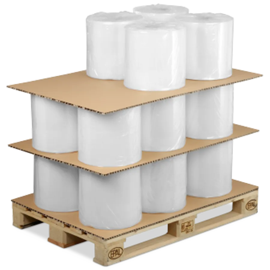 Pour les charges lourdes à surface irrégulière ! Les intercalaires en carton alvéolaire mesurant 100 x 120 cm sont parfaits pour stabiliser et séparer des produits lourds. Leur structure en nid d'abeilles assure une résistance exceptionnelle tout en maintenant un poids minimal, ce qui les rend particulièrement efficaces. Utilisables comme intercalaires, fonds de palette ou coiffes, ils offrent une grande polyvalence. De plus, leur couverture extérieure, testée à 200 gr, garantit une protection optimale pour vos marchandises.