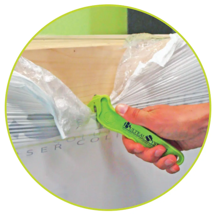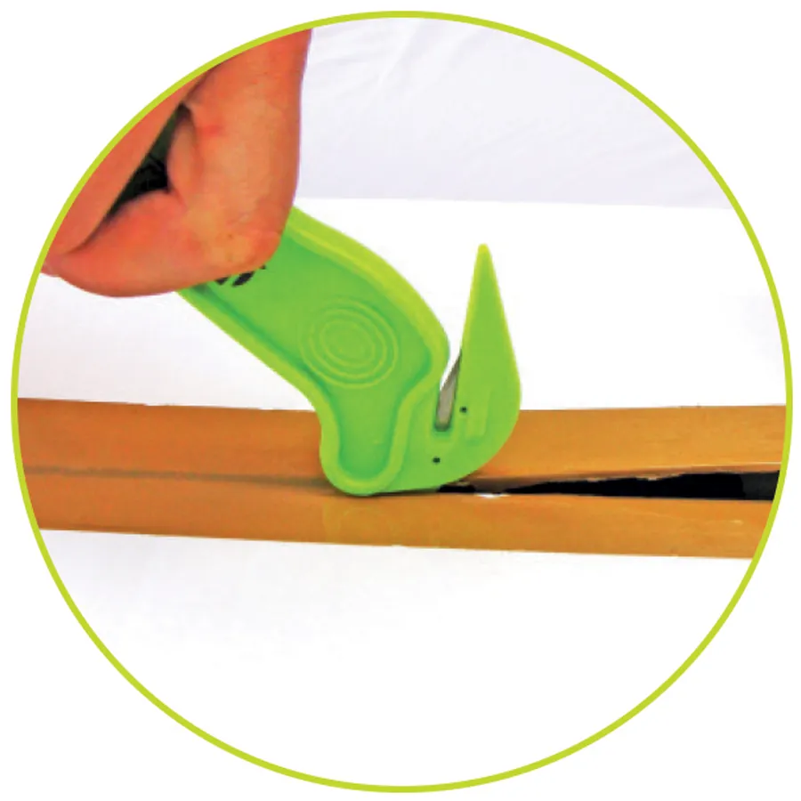 - 2 fonctions : couper le film et déchirer les adhésifs grâce à l'ergot métallique.