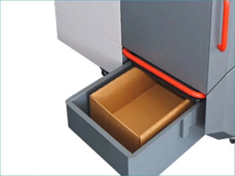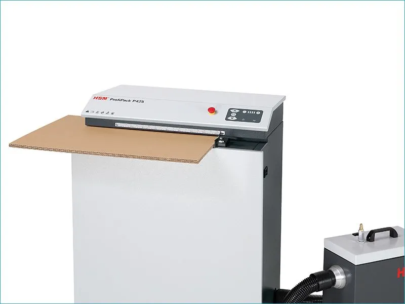 Capacité de coupe : avec une hauteur d’admission de 20 mm, cette machine permet de transformer jusqu’à 20 mm d’épaisseur de carton en un seul passage (soit 2 à 3 cartons à la fois). Simultanément, le carton est découpé sur une largeur de 425 mm.