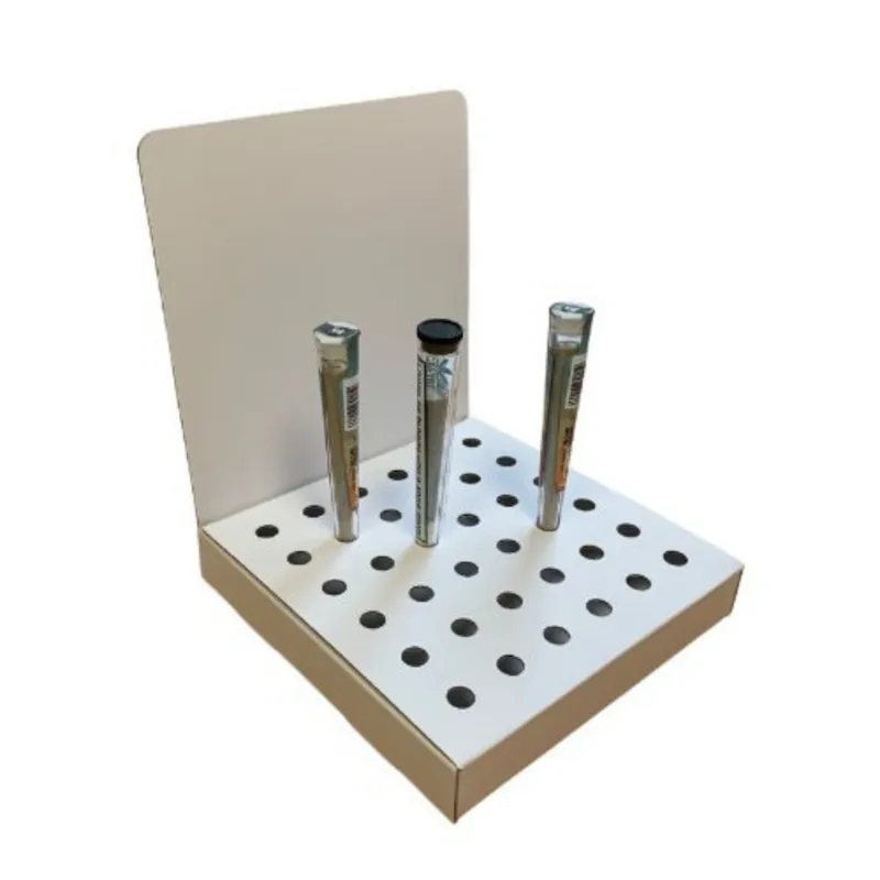 Spécialement conçu pour les pré-rolls CBD, ce présentoir compact et moderne est idéal pour organiser vos produits en boutique. Chaque trou est parfaitement calibré pour maintenir les pré-rolls bien en place, garantissant une présentation soignée et attrayante. Ce présentoir peut également s’adapter à d'autres produits similaires, comme des encens en bâtonnets, des stylos ou des petits accessoires. Fabriqué en carton recyclable, il allie durabilité et praticité pour répondre aux besoins des commerces cherchant à optimiser leur espace de vente.