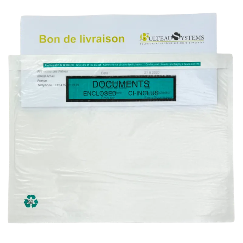 La pochette éco-responsable idéale pour vos envois ! Cette solution d’expédition plus respectueuse de l’environnement grâce à cette pochette porte-documents en papier au format 22,5 x 16,5 cm. Conçue pour accueillir des documents plus grands ou multiples, elle assure une protection fiable pour vos factures, bons de livraison, notices ou documents douaniers.