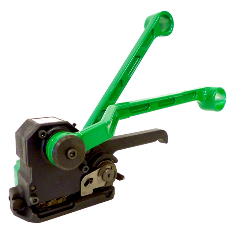 Avec ce combiné manuel tendeur-sertisseur, cerclez vos produits et palettes à la fois verticalement et horizontalement.