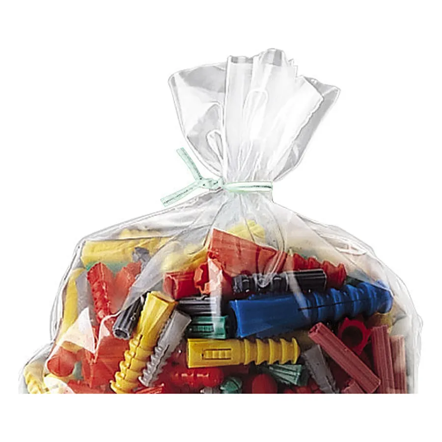 Attache souple équipée d'un fil métallique permettant d'ouvrir et de fermer le sachet facilement.