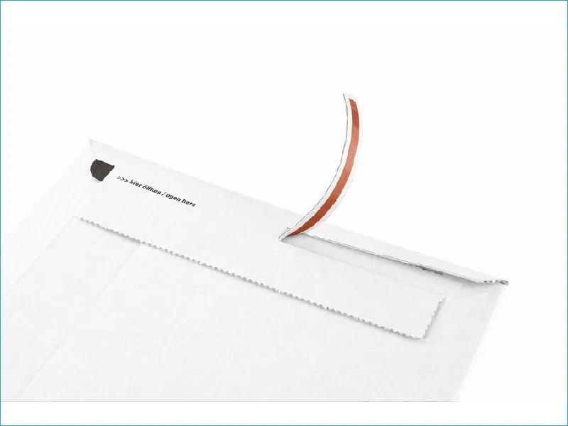 Livré en carton Les pochettes d'expédition en carton blanche de dimensions 23,5 x 34 x 5 cm offrent une solution sûre pour l'envoi de divers articles. Leur ouverture pratique par bande d'arrachage facilite le processus d'emballage, tandis que leur conception avec soufflets permet une hauteur de remplissage variable jusqu'à 5 cm, assurant ainsi une protection optimale pendant le transport.