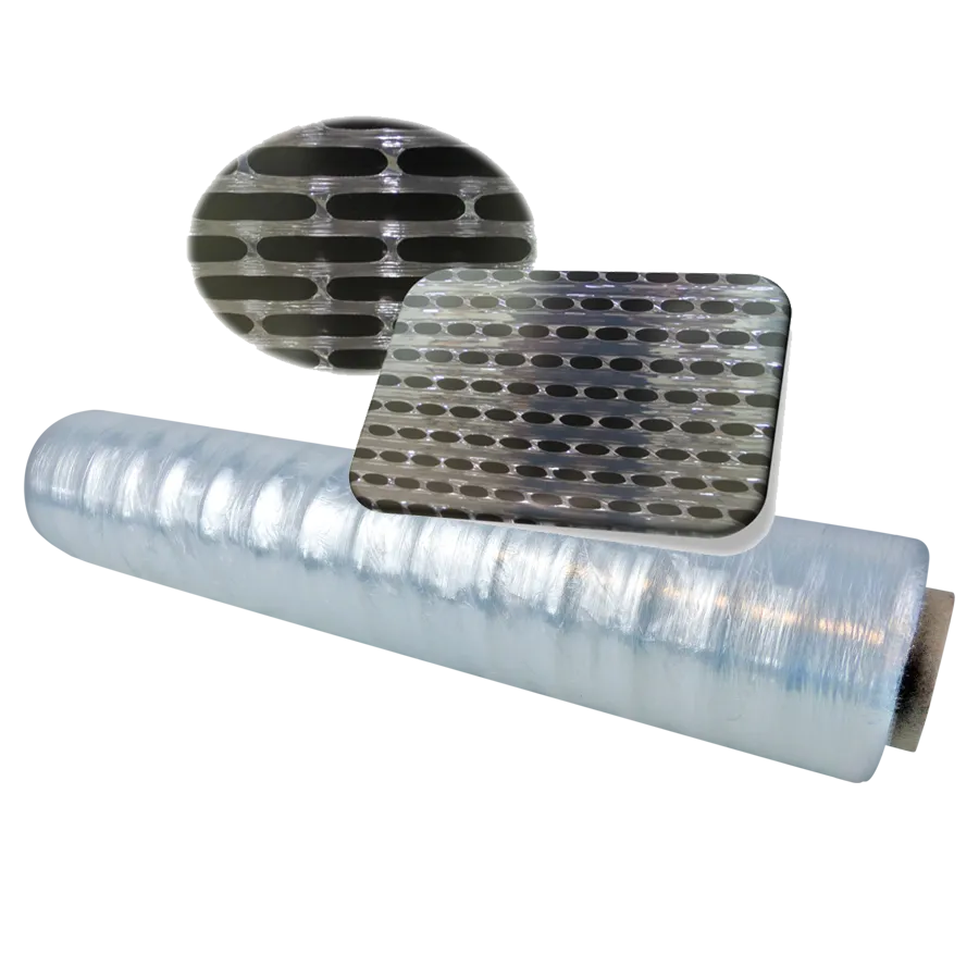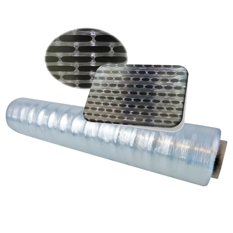 La macro-perforation garantit une excellente circulation de l’air entre le film et le produit et une stabilisation efficace de la palette grâce à son élasticité et sa robustesse. La technicité du film assure une stabilisation de la palette avec un excellent maintien de la charge, assurant une optimisation de l’emballage de vos palettes par rapport à un filet classique. Le film macro-perforé supprime la condensation par rapport à un film étirable standard lors du stockage de vos produits.