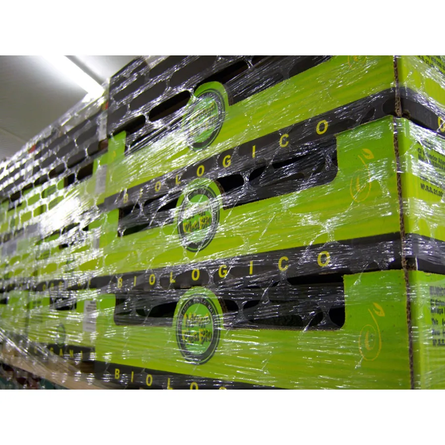 Concernant le stock des produits destinés à la surgélation, le banderolage macro-perforé facilite le processus de congélation. Vos palettes de plantes, fruits et légumes peuvent être arrosées ou vaporisées facilitant leur préservation. Même avec plusieurs couches de films macro-perforés, vos produits peuvent respirer optimisant votre conditionnem Optez pour le film étirable manuel macroperforé transparent 430 mm x 300 M pour une palettisation optimisée de vos produits sensibles à l'humidité. Sa macro-perforation innovante assure une ventilation optimale, éliminant les risques de condensation, tout en garantissant une stabilisation fiable de vos palettes grâce à sa remarquable élasticité. Idéal pour les produits périssables, ce film facilite la congélation des stocks destinés à la surgélation et permet l'arrosage de vos palettes de plantes, fruits et légumes sans compromettre leur intégrité. Avec ses 300 mètres de longueur, il offre une solution durable et économique, surpassant les filets classiques en efficacité et protection.