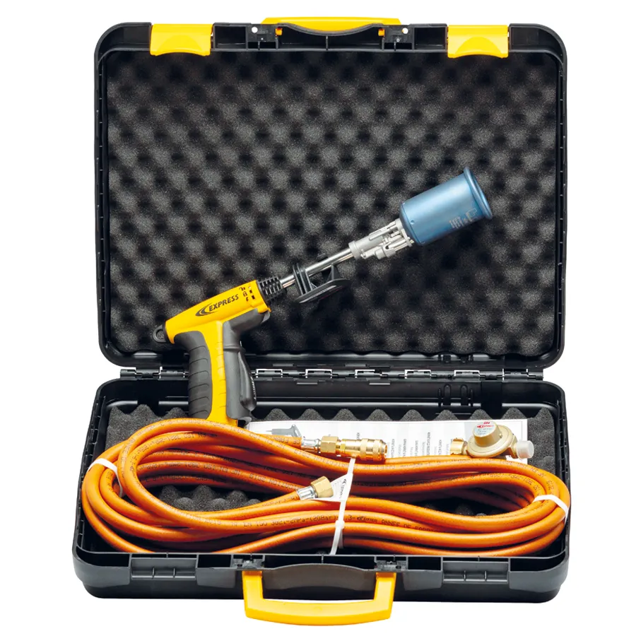 Ultra performant et facile d'utilisation! Grâce à sa flamme large, le pistolet de rétractation SHREC2 est doté d'une gamme de brûleurs allant de 50 à 150kW. La connexion au tuyau se fait en un clic grâce au raccord rapide. La flamme est ainsi rapidement disponible grâce à l'alllumage piezo synchronisé, obtenu par simple pression sur la gâchette. Les lances sont interchangeables sans aucun outil.