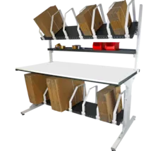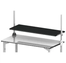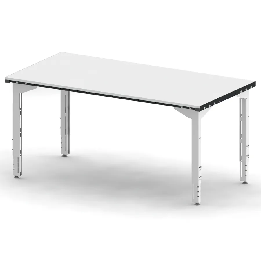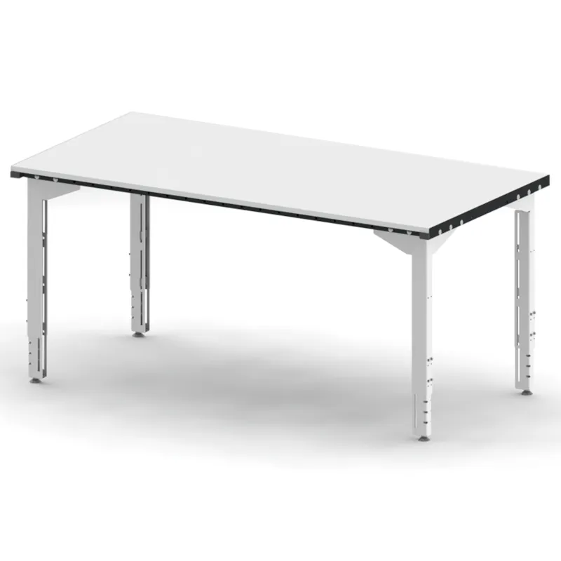 La large gamme de dimensions de tables et la multitude d’accessoires proposés permettent de nombreuses combinaisons de configuration. Grâce au réglage en hauteur des tables par vis d’arrêt, manivelle ou moyen électrique et la modularité de chaque accessoire on améliore grandement la satisfaction et la santé des employés, mais aussi leur productivité. Cette table de préparation sur pieds standards (200 x 90 cm) est conçue pour optimiser l'ergonomie des postes de travail et prévenir les TMS. Sa structure en acier mécano soudé garantit robustesse et une capacité de charge jusqu'à 350 Kg. Avec une hauteur ajustable de 70 à 110 cm, elle s'adapte aux besoins variés des manutentionnaires. Le plateau en mélaminé blanc, d'une épaisseur de 19 mm, est encadré d'acier perforé pour faciliter l'ajout d'accessoires. La finition en peinture époxy (gris foncé RAL 7021 et gris clair RAL 7047) allie durabilité et esthétique, assurant un excellent rapport qualité-prix.