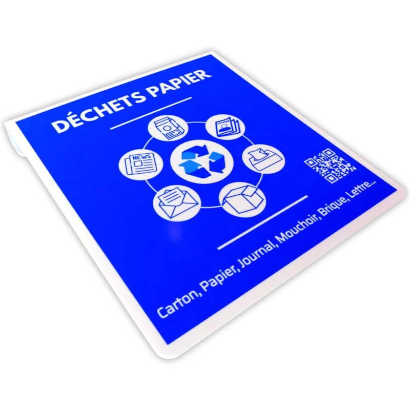 Plaque signalétique pour poubelle de tri - Papier/Bleu