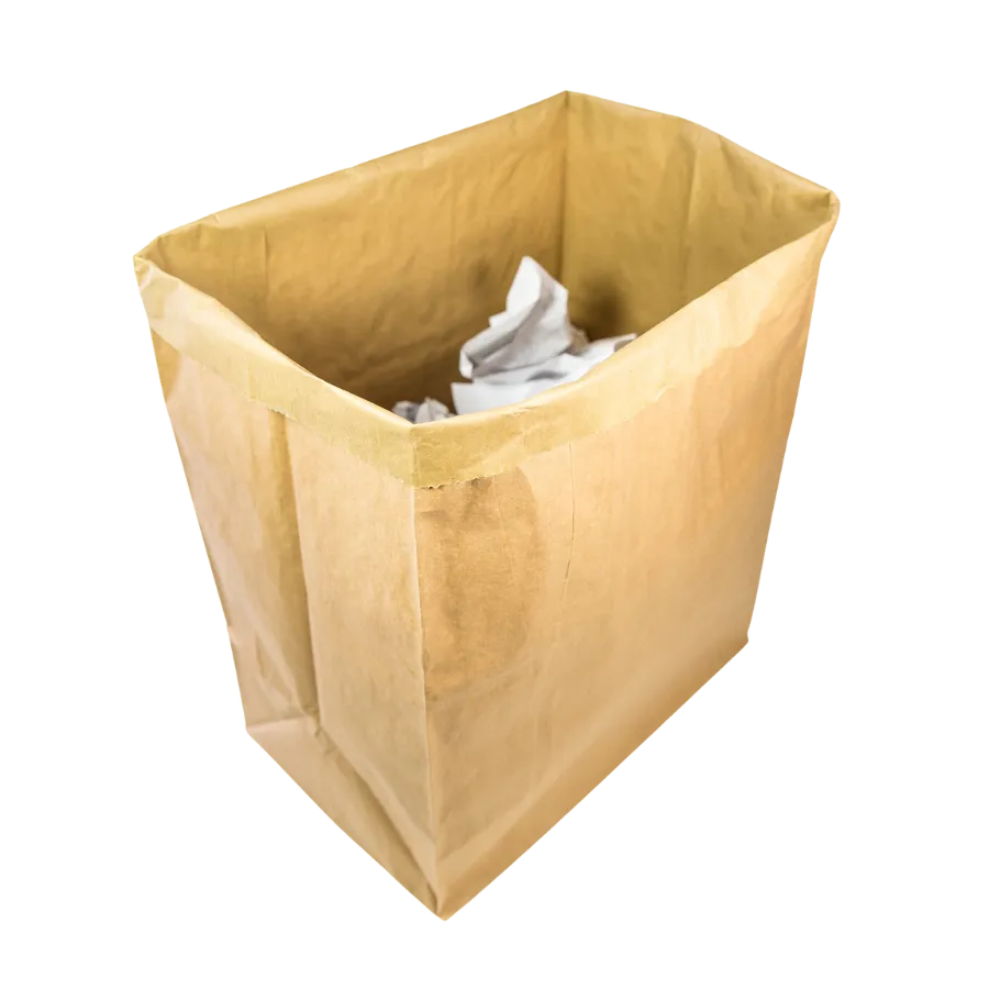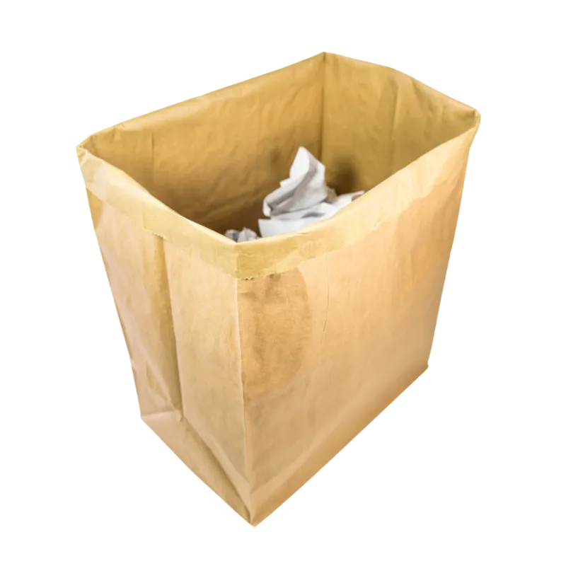 Fond autoporté rectangulaire et recyclable ! Fabriqué avec deux feuilles de papier kraft d'une épaisseur de 70gr/m2, le sac à déchet kraft est recyclable. Il résiste à l'eau et est spécialement conçu pour les déchets végétaux, déchets de chantier et bâtiment, déchets industriels ou de construction. Il peut aussi être utilisé dans les processus de fabrication pour le stockage de plume pour les housses par exemple ou pour le déménagement afin de protéger sans rigidité. Le sac à déchet kraft est donc un contenant valorisable et biodégradable. Il peut venir en remplacement des saches plastiques pour faciliter la valorisation matière de vos déchets. Son fond rectangulaire et autoporté fait qu'il peut s'utiliser sans support de sac. Fabriqués à partir de 100% de papier, c'est un produit renouvelable et biodégradable qui permet de contenir différents types de déchets tout en évitant la déchirure. Produit accepté en compacteur. Découvrez notre sac à déchet kraft autoporté de 80 L, une solution écologique et robuste pour la gestion de vos déchets. Fabriqué en double feuille de papier kraft 70gr/m2, ce sac résiste à l'eau et supporte jusqu'à 40 kg, idéal pour les déchets végétaux ou industriels. Son design microporeux favorise l'aération, tandis que son fond rectangulaire assure une stabilité sans support externe. Entièrement recyclable et biodégradable, il constitue une alternative durable aux sacs plastiques. Disponible en largeur de 45 cm, avec personnalisation dès 5000 unités.