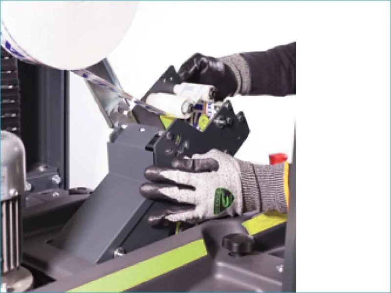 - Caractéristiques techniques : Système d'entraînement doublé : 2 bandes d’entraînement largeur 75mm sur la partie haute mais aussi 2 bandes sur la partie basse Le groupe supérieur est réglable par une manivelle située sur la partie haute d’une des deux colonnes. Guide latéraux réglables manuellement. Boîtier marche/arrêt verrouilable situé sur le coté de la machine. Hauteur de travail ajustable Sens de fonctionnement standard : face à l'interrupteur principal, les colis transitent de droite à gauche