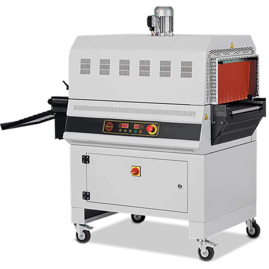 Le tunnel 50 DIGIT est à combiner avec une soudeuse en L semi-automatique ou automatique, pour la rétraction par ventilation à air chaud de toutes sortes de produits conditionnés sous film rétractable.
