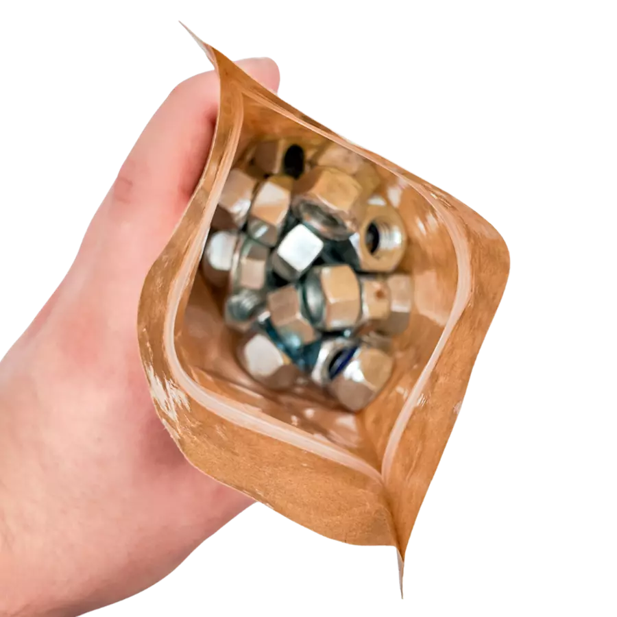 Le sachet kraft Doypack sans fenêtre 13 × 21 × 3,5 cm est conçu pour accueillir des contenus plus volumineux tout en garantissant une excellente protection. Son kraft robuste offre une tenue fiable pendant le transport et en rayon, tandis que sa base élargie assure une parfaite stabilité. Complètement opaque, il préserve la qualité des produits sensibles à la lumière. Sa surface naturelle se prête facilement à la valorisation de votre marque via étiquettes, stickers ou tampons.