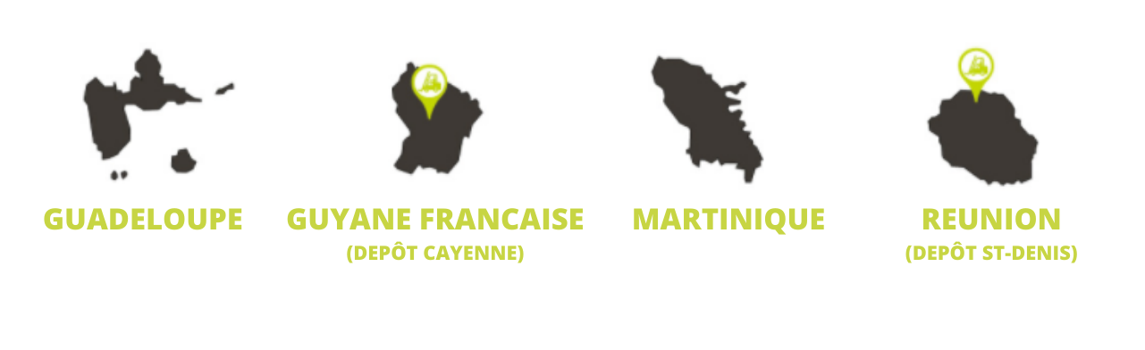 Nous assurons un service de livraison sur tous les territoires, y compris dans les zones éloignées de l'axe littoral traditionnel. Nos produits vous sont livrés généralement sous 48h à 72h pour la GUYANE et la REUNION.