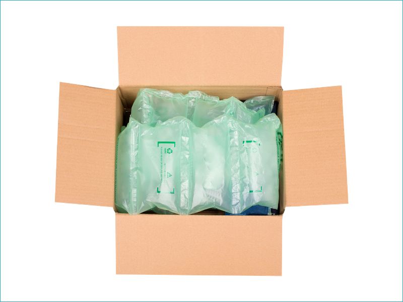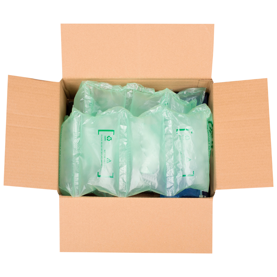Cette machine pour coussins d’air a été exclusivement étudiée pour l’utilisation de films biodégradables et recyclés.