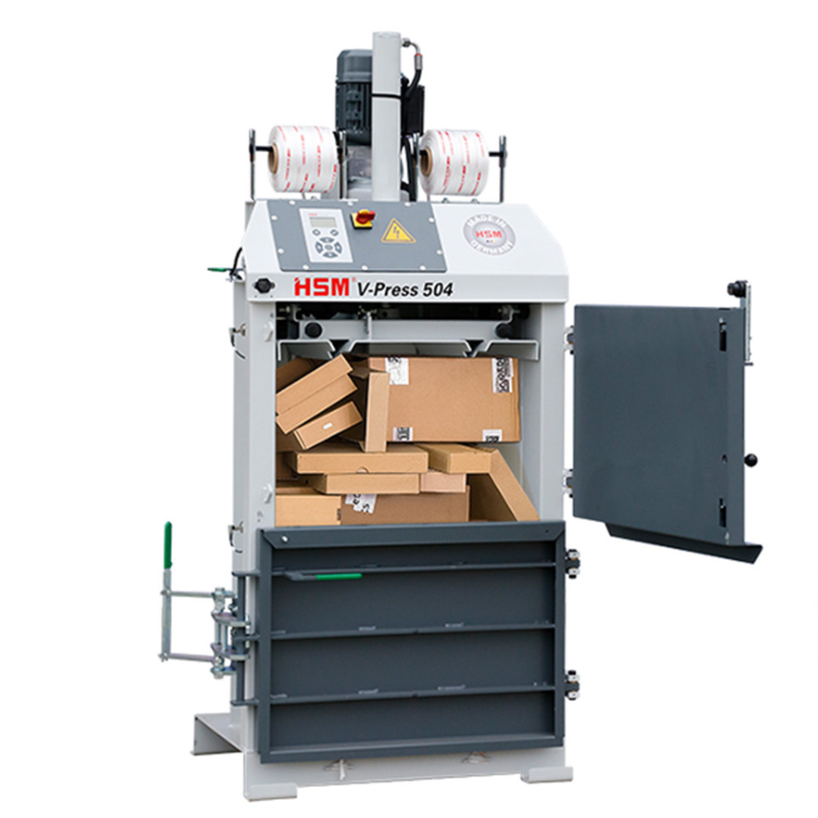 Optez pour la solution la plus économique de traitement de vos déchets ! Le modèle HSM V-Press 504 peut faire des balles pesant jusqu'à 60 kg. Compactage économique de vos balles papier, cartons, et plastiques. Peut faire des balles pesant jusqu'à 60 kg. Les presses verticales conviennent parfaitement, de par leurs dimensions, leur coût et leurs caractéristiques, à l’industrie et au commerce. Ces presses à balles vous permettent de réduire le volume des matériaux d’emballage directement sur place jusqu’à 95 % de leur volume initial. Chargement idéal des poids lourds. Utilisation de récupération de chaleur dans la production. Les emballages peuvent devenir un problème. Si l’on considère le matériel d’emballage usagé comme faisant partie d’une chaîne de recyclage, celui-ci devient une matière première de récupération. Comment traiter efficacement et compacter cette matière première ? HSM vous offre des solutions pour atteindre cet objectif grâce à une technologie à la fois approuvée et n
