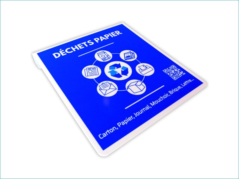 Plaque signalétique pour poubelle de tri - Papier/Bleu