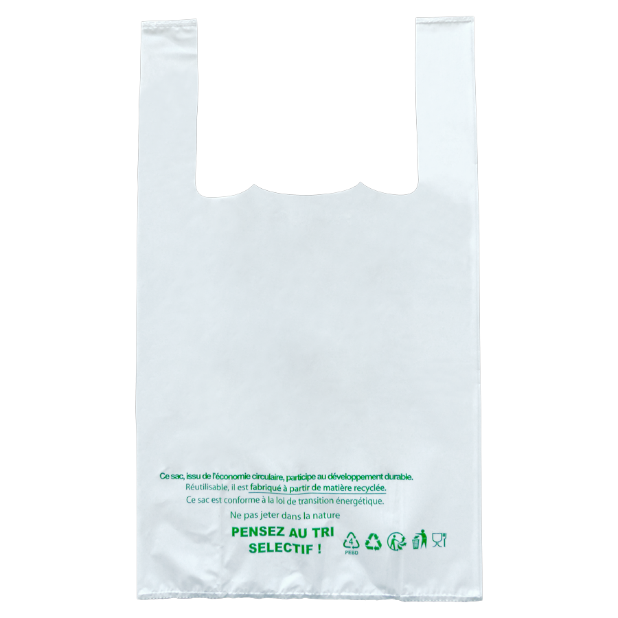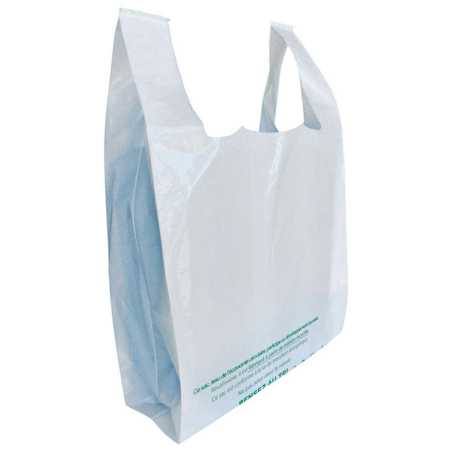 Réutilisable et résistant ! Fabriqué en plastique PEBD 50 microns, ce sac plastique à bretelles à des poignées et des soufflets latéraux pour faciliter le transport de vos produits. Découvrez notre sac plastique blanc à bretelles, un allié quotidien pour vos emplettes. Fabriqué en PEBD robuste de 50 microns, il est conçu pour la réutilisation et le recyclage, respectant ainsi les exigences de la loi de transition énergétique. Ses dimensions généreuses (30 x 54 cm) avec soufflets latéraux offrent une capacité accrue et un confort de portage optimal. Apte au contact alimentaire, il arbore des mentions légales et un code barre pour une traçabilité assurée. Un choix responsable pour transporter vos produits en toute sécurité.